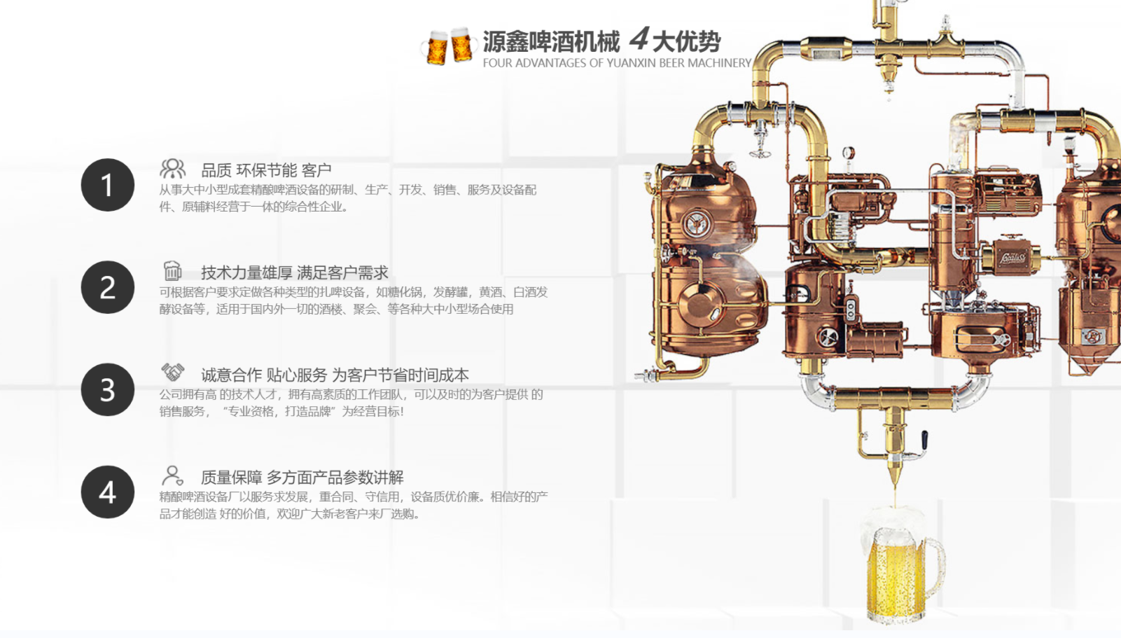 想要啤酒有好的口感,不僅要有良好的釀制工藝,主要的還需要有優(yōu)良的設(shè)備,因此我們經(jīng)...